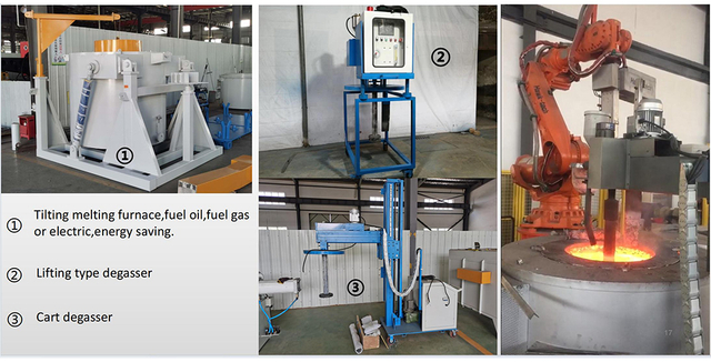 Вы можете найти все оборудование для полного процесса литья алюминиевого литья здесь. Hanzhu Machinery предоставляет подробную плану кавычки в соответствии с производственными требованиями клиента. Оборудование включает в себя плавирующие печи сопротивления, дегассер с азотом и аргоном, заливные алюминиевые инструменты, устройство для предварительного нагрева, приспособление для литья, материал потребления для низкого давления и гравитационного литья, подъемную трубку и так далее.